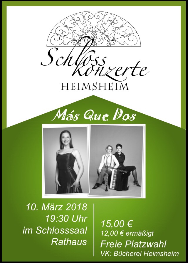 Die Musik, der sich das Trio Más Que Dos mit dem aktuellen Programm „Danzas cantadas“ widmet, schöpft aus der spanischen und katalanischen Heimat der Sängerin. Habanera, Sardana, Zapateado und Vals … Gesungene Tänze in ungewöhnlicher Besetzung mit furiosen Kastagnetten und schmelzender Mundharmonika verfeinert.